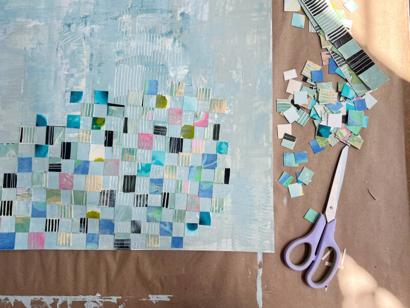 this piece was made by deconstructing old artwork, giving older artwork a 'second chance'